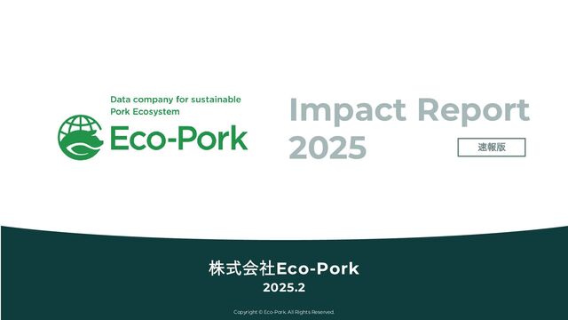 あることが明らかになりました。 また、導入初年度以降も継続的な 向上効果が確認されており、今後 さらに導入農家が増加し、Porker の継続利用が進むことで、そのイ ンパクトは一層拡大していくと予 想されます。 農家・畜産業の 売上の増加 繁殖成績の向上 豚肉出荷量の増加 Porker 生産支援 母豚数 110,923頭 産子総数(差分) 216,943頭 出荷頭数(差分) 164,876頭 • 2024年10月時点の Porker導入農家の 母豚数は110,923頭 • 全国の母豚飼養頭数は 758,300頭 (畜産統計調査, 2024年) • 全国の約14.6%の シェアを占める • Porker導入農家は、 総産子数が初年度 約7%の改善 • 次年度以降も平均して年2% 程度の向上(弊社実績) • 母豚回転数平均は2.2回、 平均産子数は12.7頭 (日本養豚協会調査, 2023年) • 12.7頭の7%分の0.889頭を Porker導入による初年度の 効果として算出 • 総子産総数に対して 76%が出荷されている • 平均産子数と離乳頭数、離乳 後の事故率から、出荷頭数が 何頭増加したか換算 • 平均産子数は12.7頭、離乳頭 数は10.4頭。離乳後の事故率 が7.1%のため、10.4×(100- 7.1)% =9.66頭が出荷頭数で、 割合としては76% (日本養豚協会調査, 2023年) • 1頭あたりの枝肉量は74.7kg と想定 • 枝肉12,000t分 = 精肉8,000tが、 消費者のもとに多く届い た計算 • 出荷時体重や枝肉の歩留まり、 枝肉あたりの取引価格をもと に算出。枝肉1kgあたり価格 は約575円 (畜産物流通調査, 2023年) • 農家売上は70.8億円向上 出典:農林水産省、日本養豚協会、当社Porkerデータ Impact Outcome Output Activity 農家売上(差分) 70.8億円 枝肉重量(差分) 12,000t/年 1