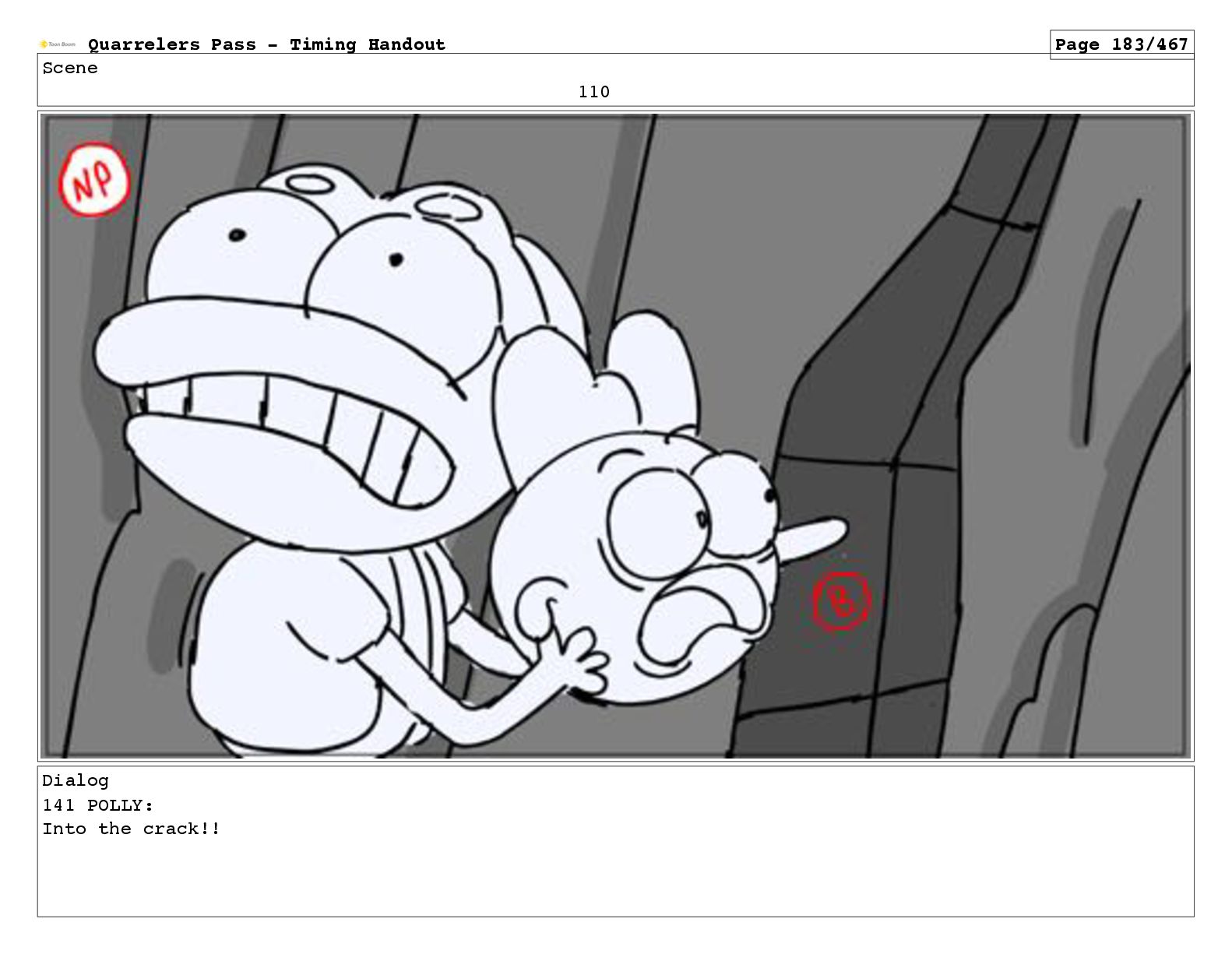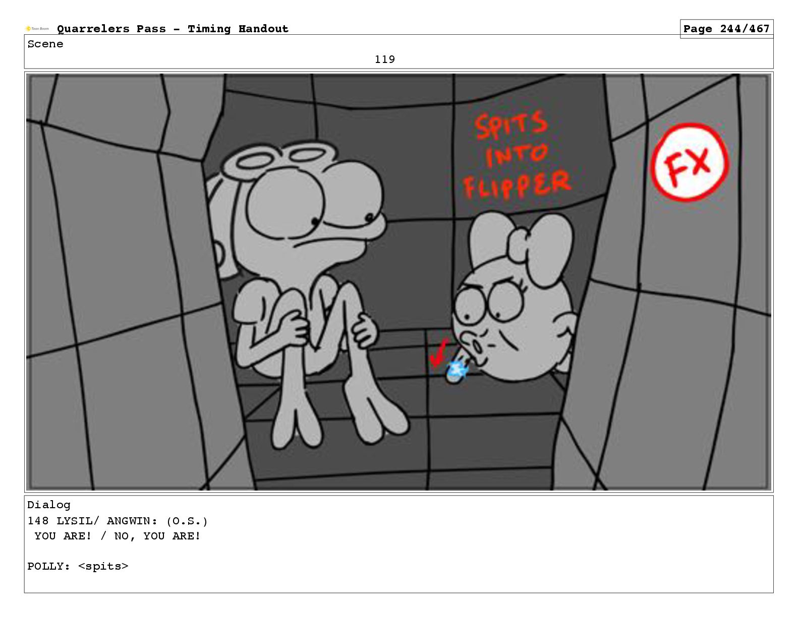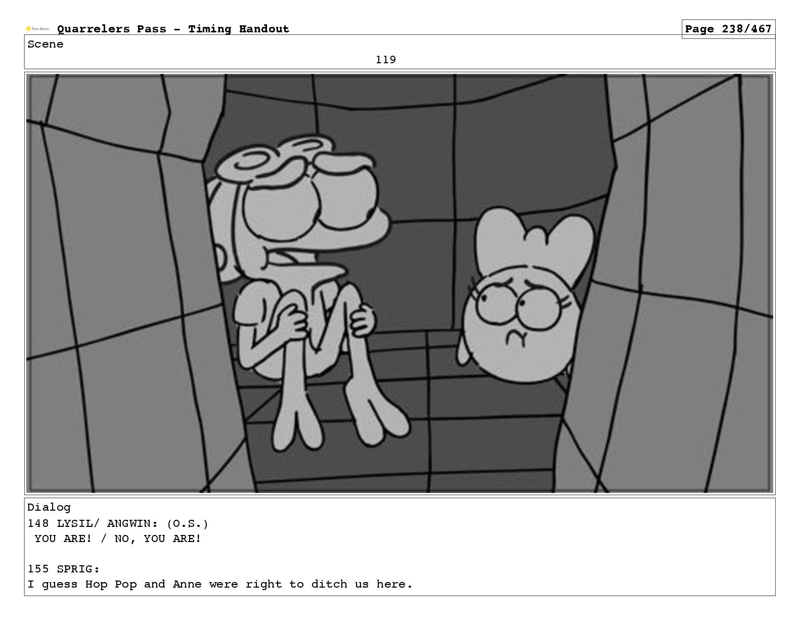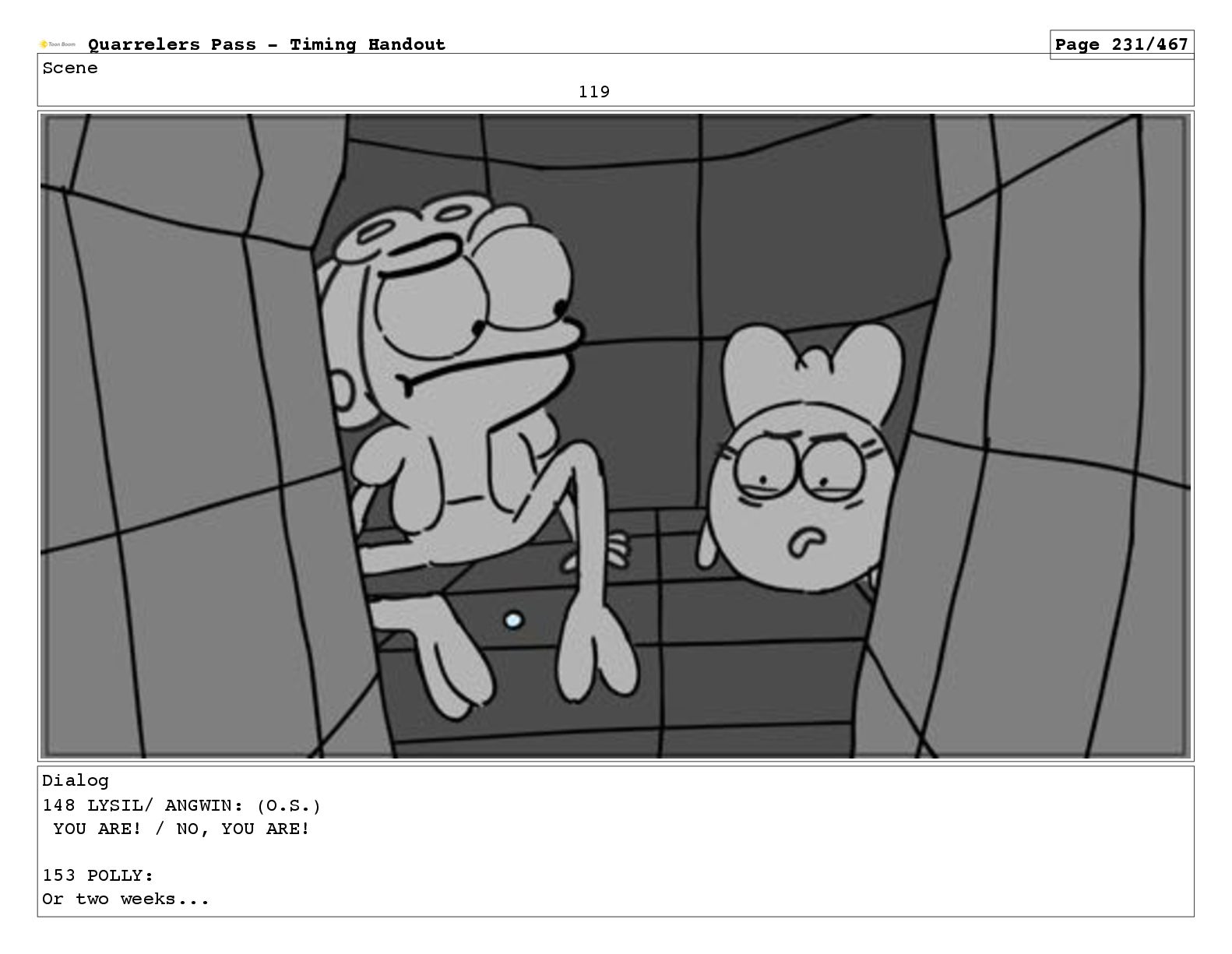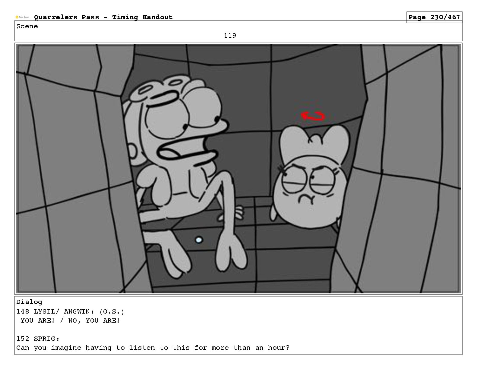Scene 110 Dialog Quarrelers Pass - Timing Handout Page 190/467