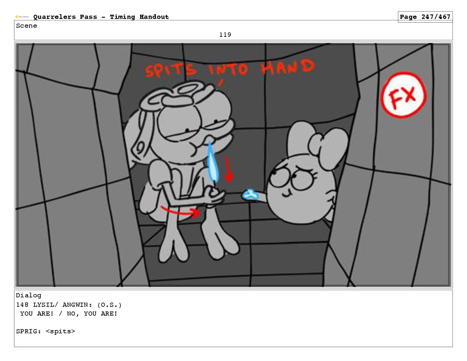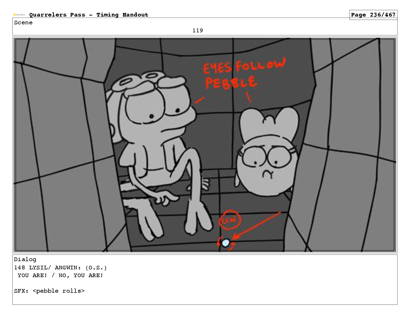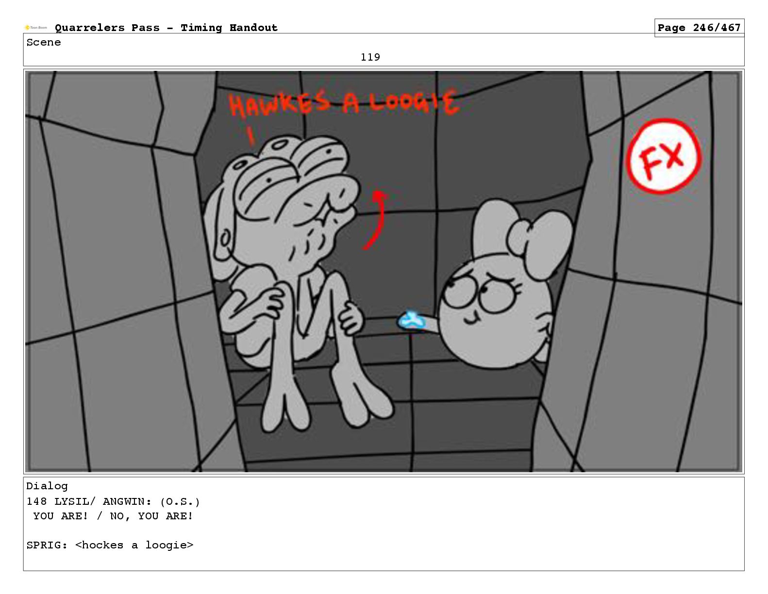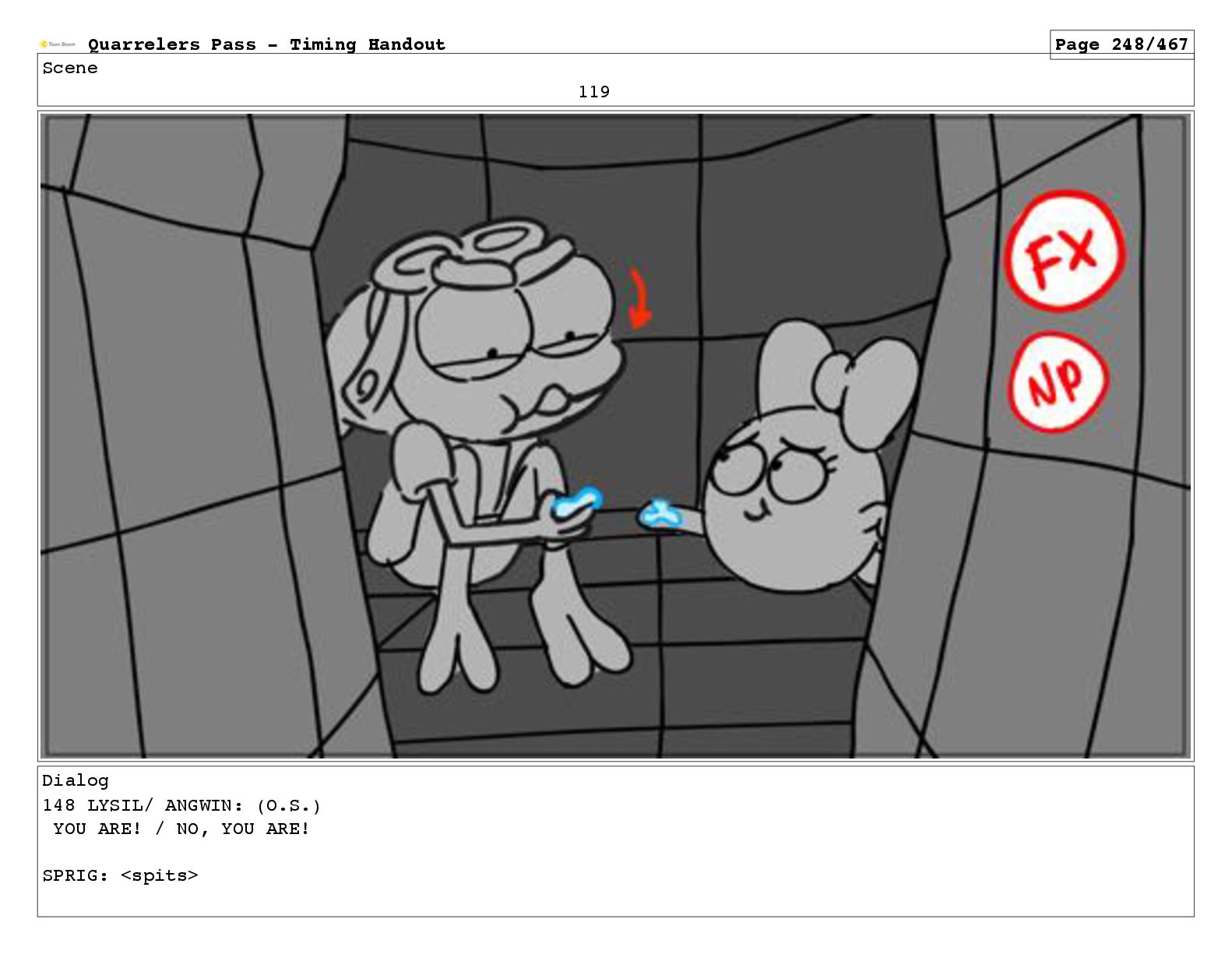 Scene 110 Dialog Quarrelers Pass - Timing Handout Page 190/467