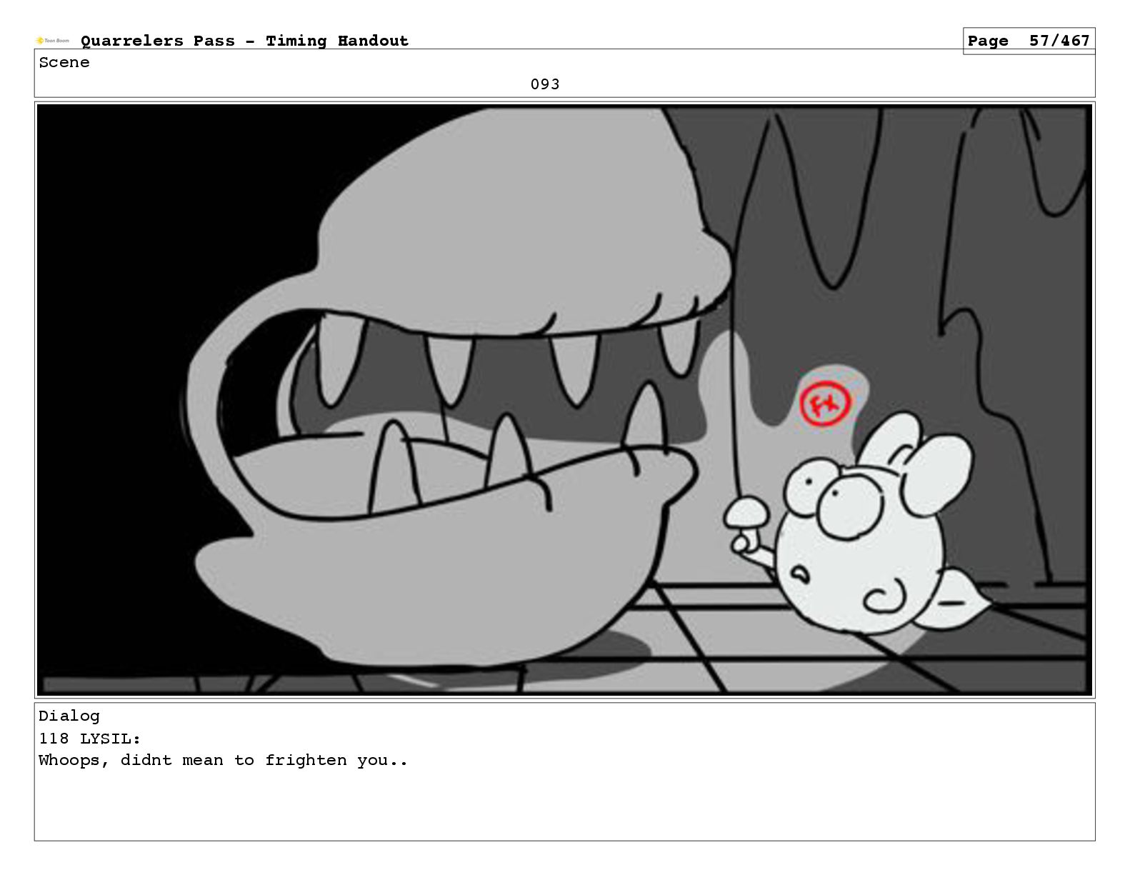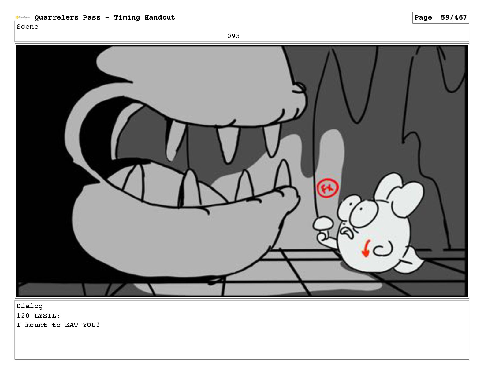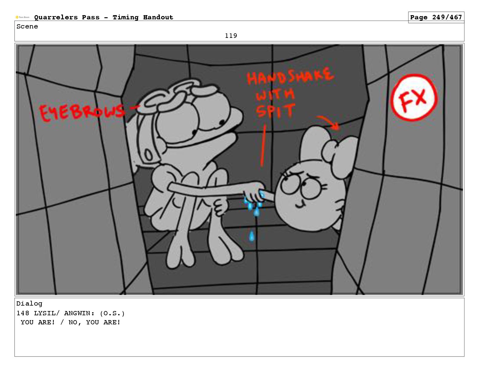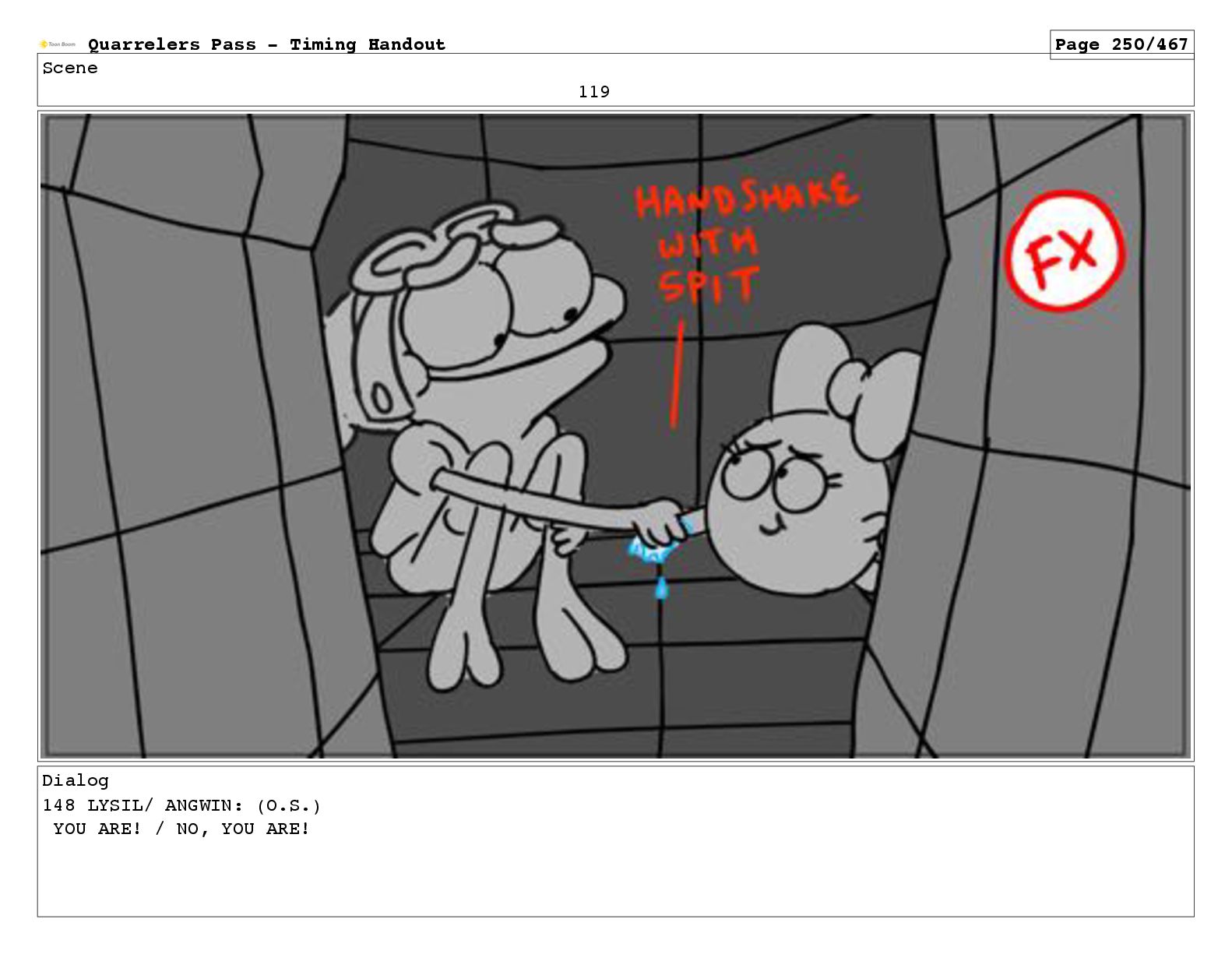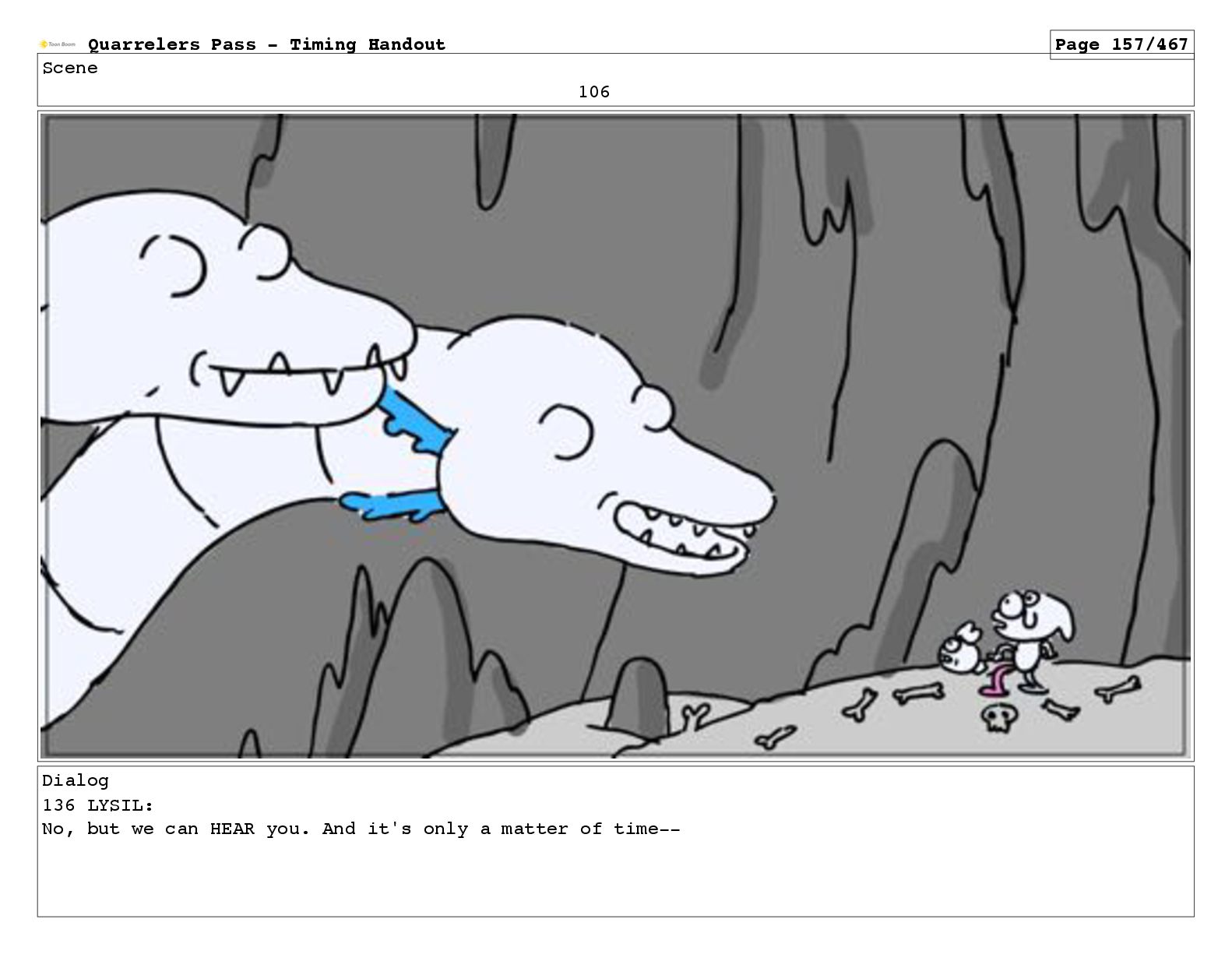 Scene 110 Dialog Quarrelers Pass - Timing Handout Page 190/467