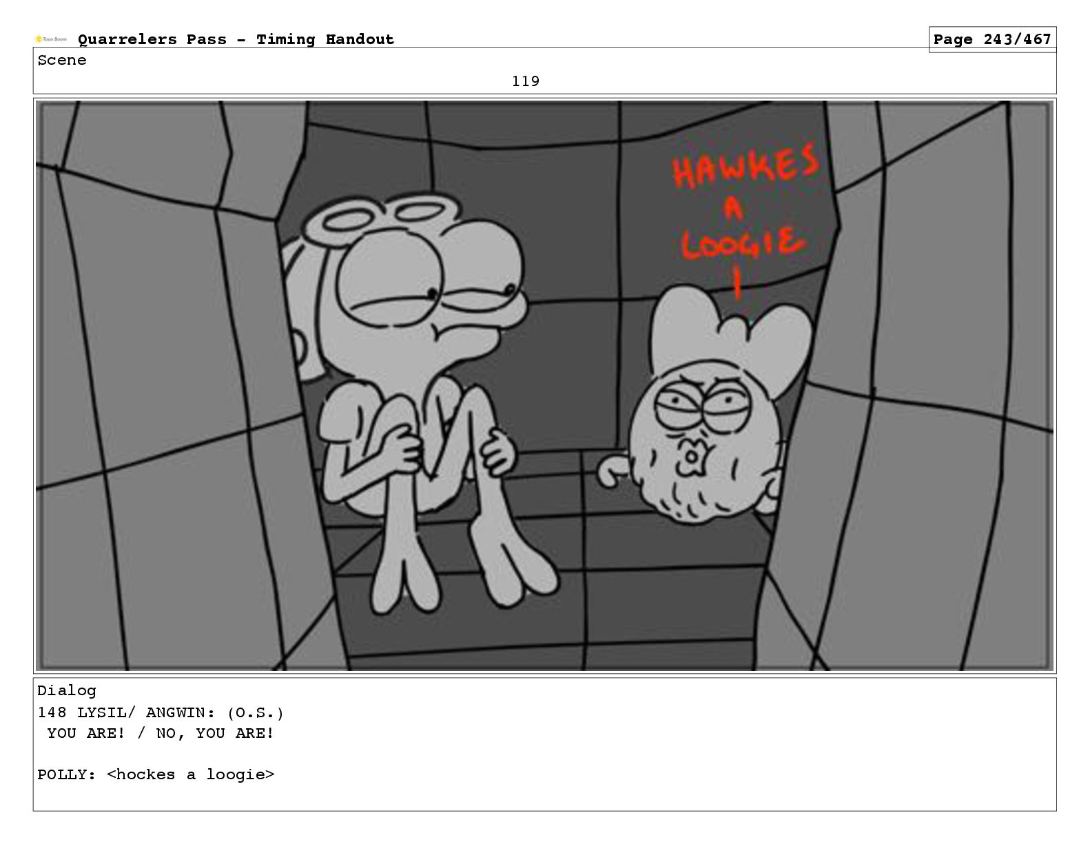 Scene 118 Dialog 149 ANGWIN: No, you are! Quarrelers Pass
