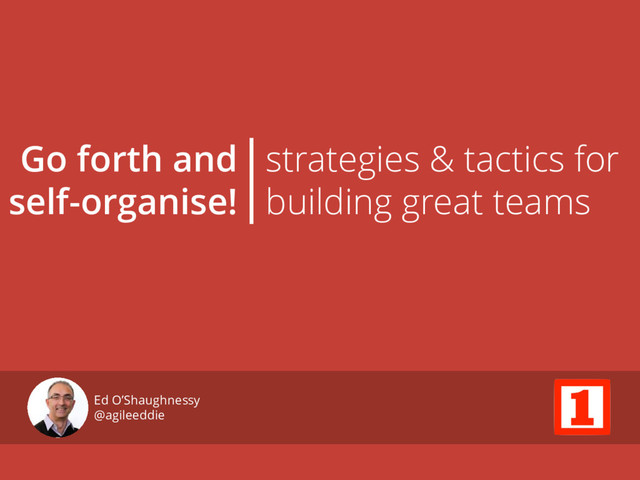 how to help with self- organisation • If you’re a manager / leader, what can you do to help self-organising teams? • If you’re a team member, what do you need from managers / leaders for you to succeed at self-organising? • Share with everyone what you found