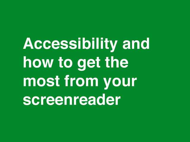 Building an interactive accessible website is often thought of as a black art. Covering some of the mistakes and pitfalls we made building GOV.UK, including building a single page "app", I will explain how you can check to see how accessible your websites are. You should come away armed with the ability to start checking and improving your sites today.