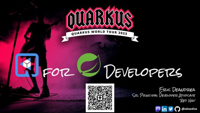 In this session, I will show concepts and conventions familiar to Spring developers and how those same concepts and conventions can be implemented in Quarkus, all while highlighting similarities and differences between them. Additionally, I will show similarities and differences in how testing is done, highlighting Quarkus Dev Services and continuous testing.