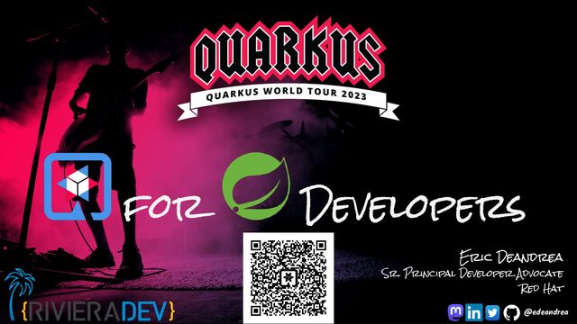 In this session, I will show concepts and conventions familiar to Spring developers and how those same concepts and conventions can be implemented in Quarkus, all while highlighting similarities and differences between them. Additionally, I will show similarities and differences in how testing is done, highlighting Quarkus Dev Services and continuous testing.
