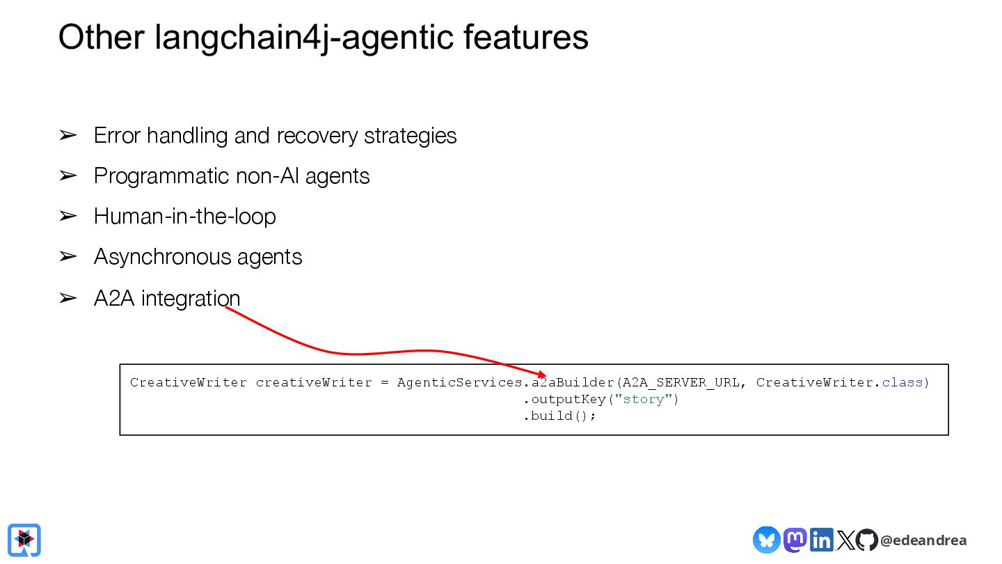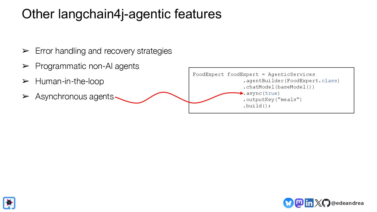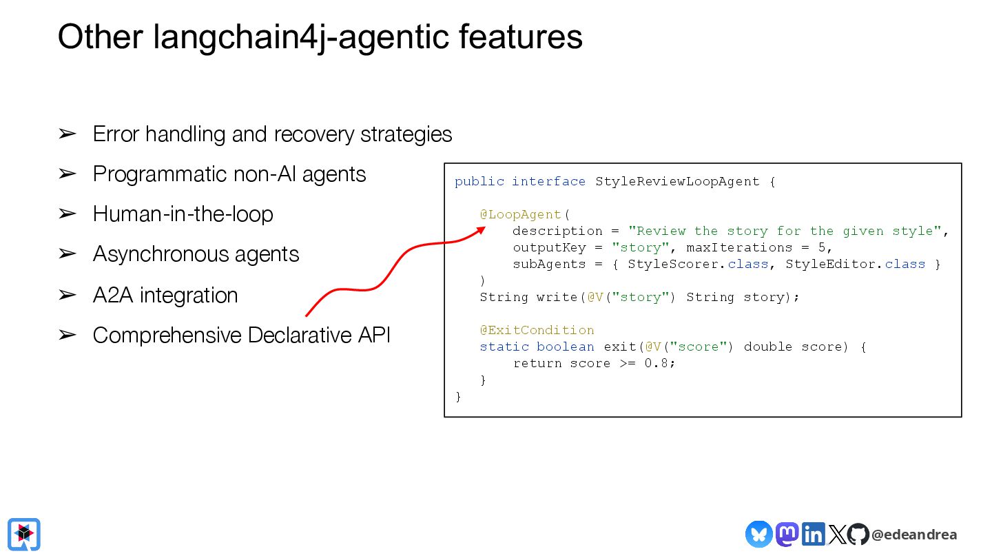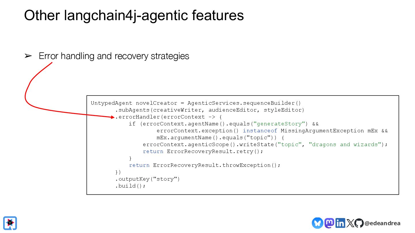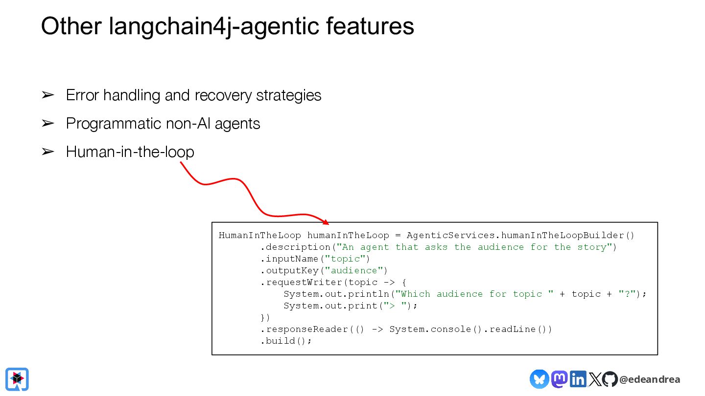 Join us for a guided tour through the possibilities of the LangChain4j framework! Chat with virtually any LLM provider (OpenAI, Gemini, HuggingFace, Azure, AWS, ...)? Generate AI images straight from your Java application with Dall-E and Gemini? Have LLMs return POJOs? Interact with local models on your machine? LangChain4j makes it a piece of cake! We will explain the fundamental building blocks of LLM-powered applications, show you how to chain them together into AI Services, and how to interact with your knowledge base using advanced RAG.