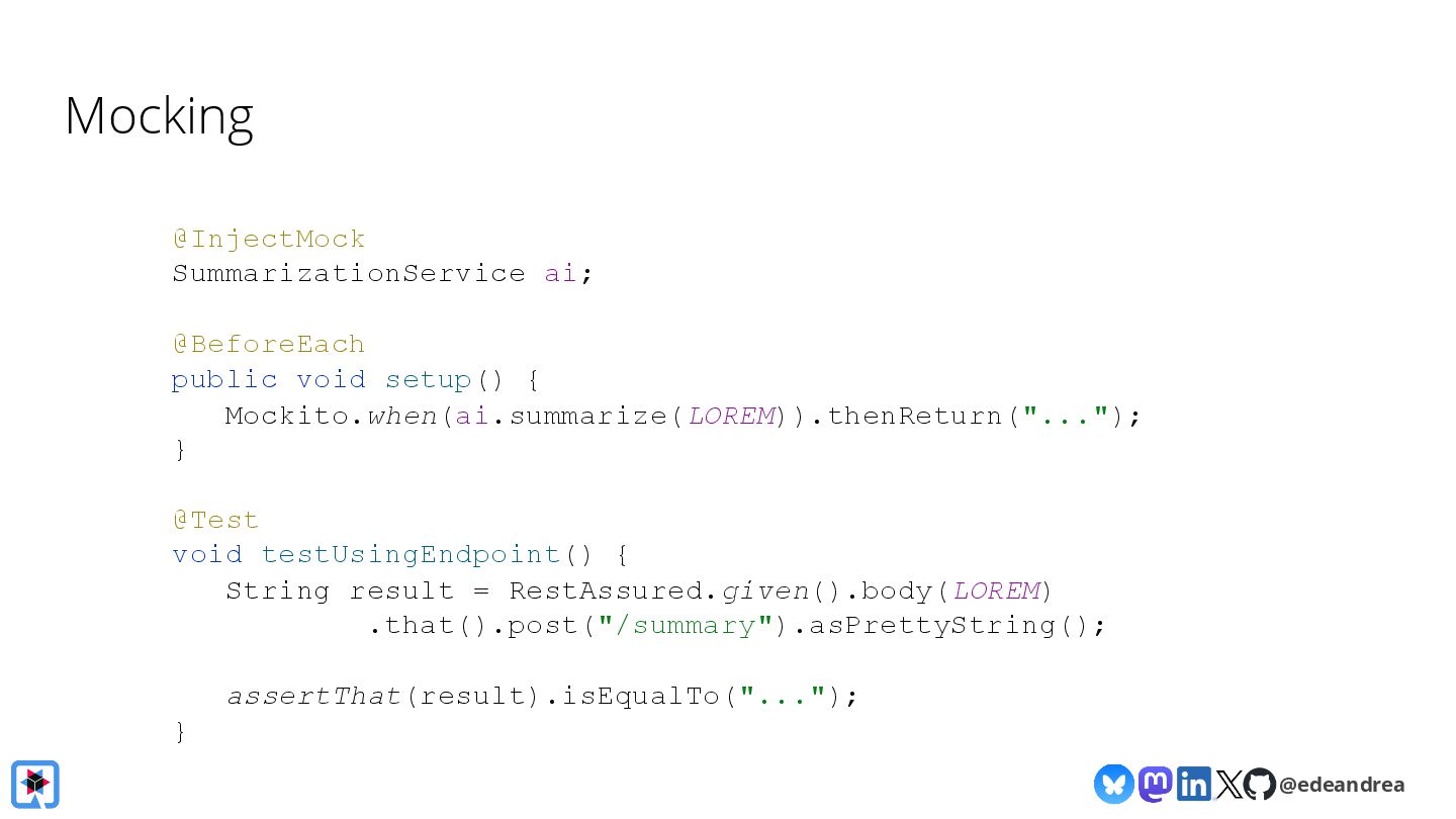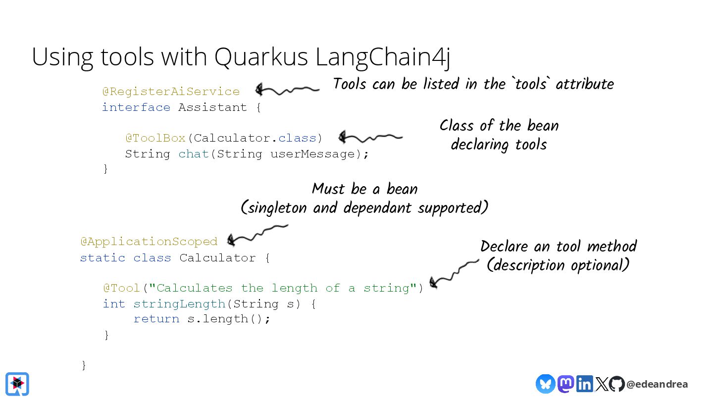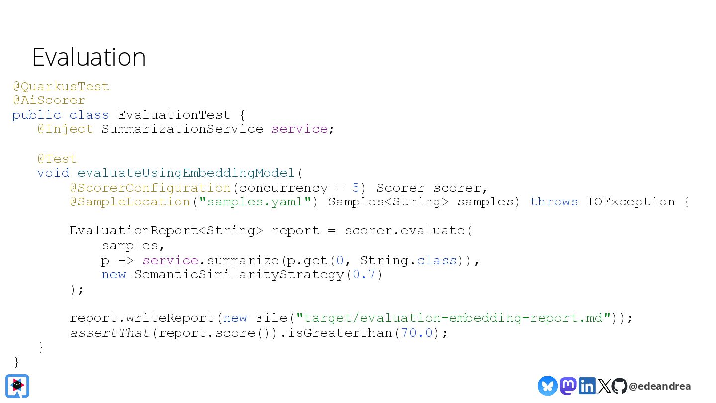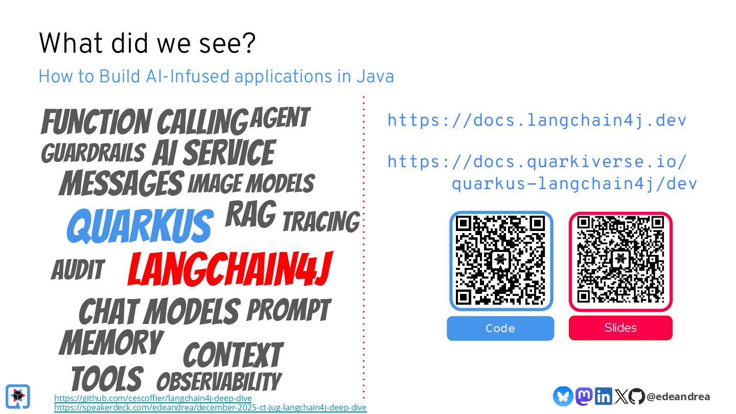 Then, we take a deeper dive into the Quarkus LangChain4j integration. We'll show how little code is needed when using Quarkus, how live reload makes experimenting with prompts a breeze and finally, we'll look at its native image generation capabilities, aiming to get your AI-powered app deployment-ready in no time.