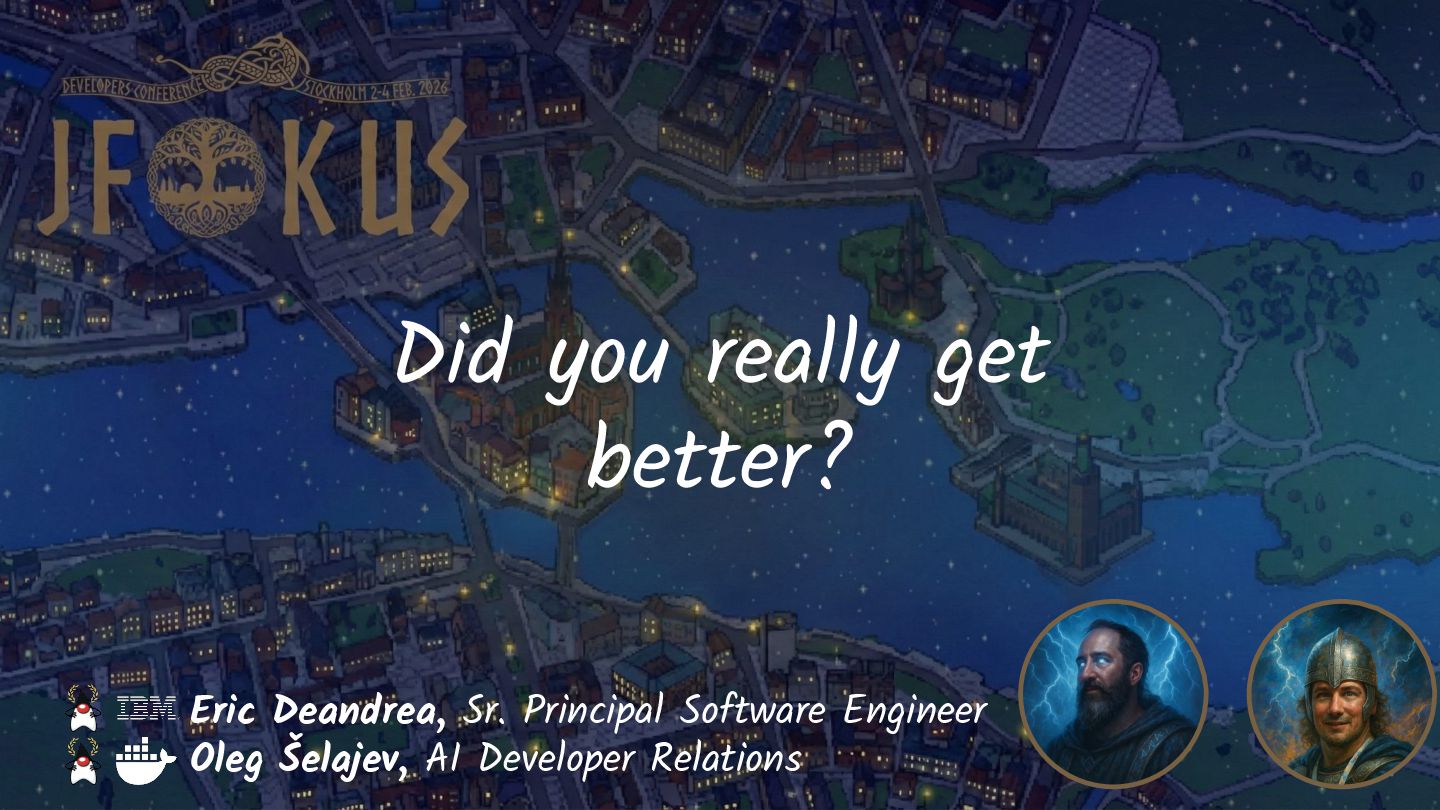 Join Java Champions Oleg & Eric in this session as they revisit a topic they debuted at JFokus last year. The AI landscape changes at a breathtaking pace, so what new capabilities and strategies have come along in the last year?