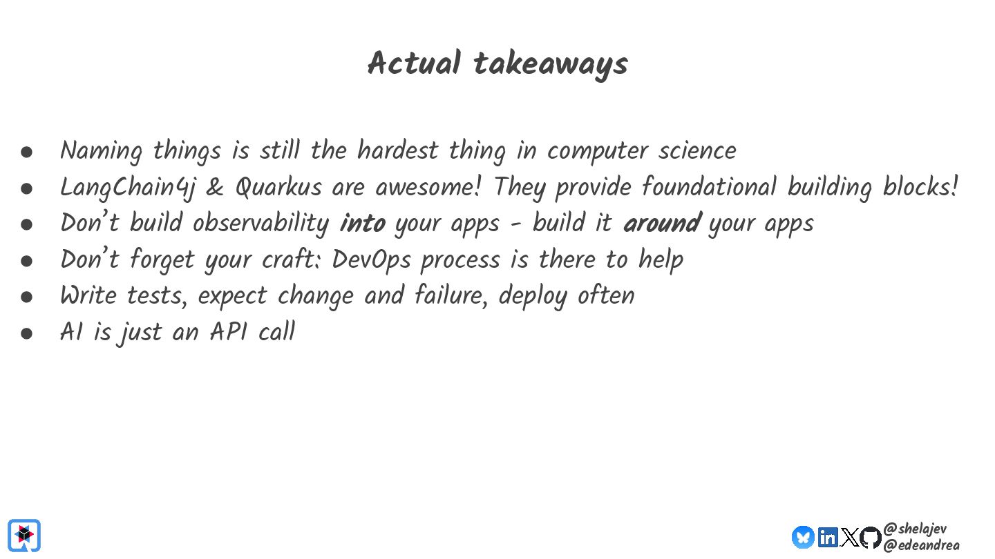 Testing is hard, which is why developers tend to avoid it. Testing non-deterministic things is even harder, which is unfortunate, since we're all writing AI-infused applications, and AI models are notoriously non-deterministic. What happens when the applications start using advanced features, such as RAG, tools, and agents? How do you test these applications? There must be some tools, technologies, and practices out there that can help, while not costing your organization lots of money!