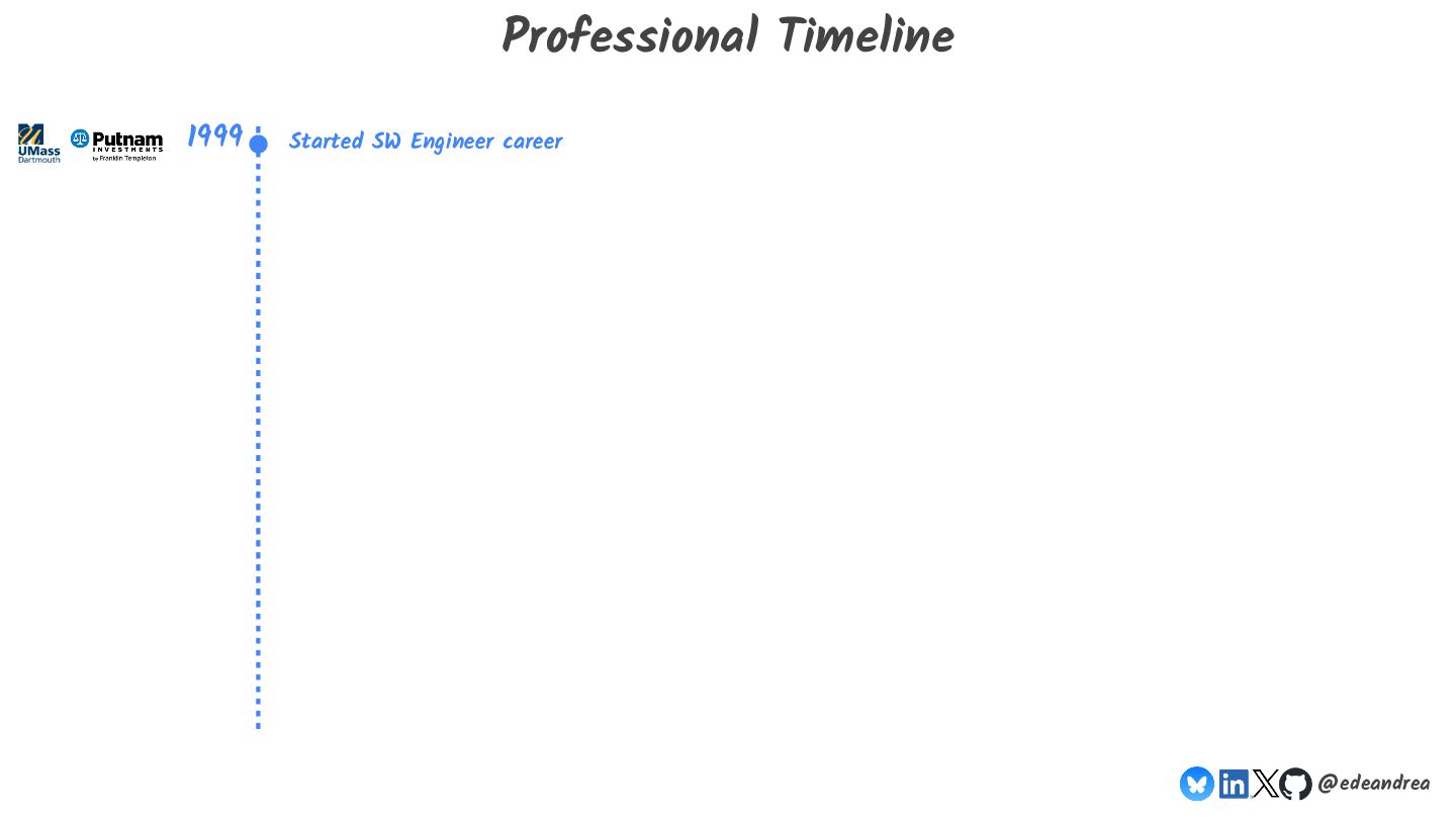 • Started using Open Source Software & teaching about it 2016 Senior Architect • 1st Open Source Software contribution 2019 Senior Solution Architect Professional Timeline