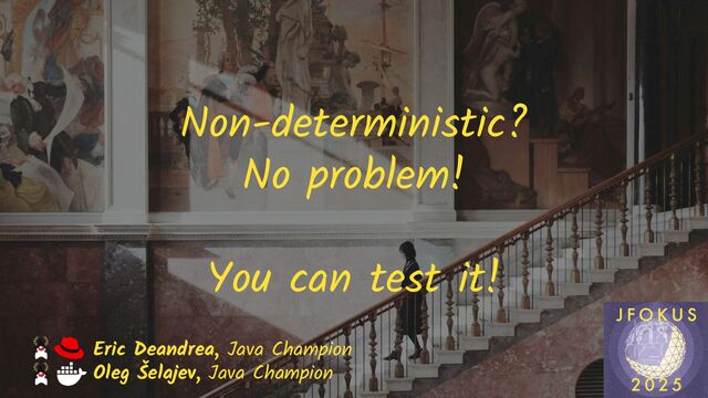 Testing is hard, which is why developers tend to avoid it. Testing non-deterministic things is even harder, which is unfortunate, since we're all writing AI-infused applications, and AI models are notoriously non-deterministic. What happens when the applications start using advanced features, such as RAG, tools, and agents? How do you test these applications? There must be some tools, technologies, and practices out there that can help, while not costing your organization lots of money!