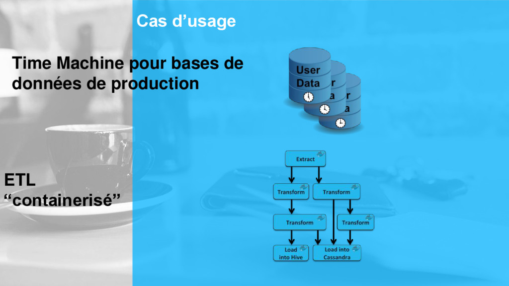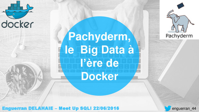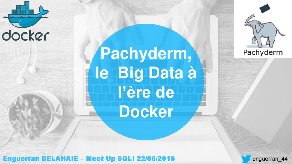Pachyderm.io Janvier 2015 V0.5 Mars 2015 et V1.0 le 5 Mai 2016 2008 : LXC 2013 Mars : Première version en Open Source Avril 2005 : Première version de GIT, en remplacement de BitKeeper. (en capitalisant sur les leçons apprises à l’usage de BK) Joe Doliner (RethinkDb, Airbnb) Joseph Zwicker (RethinkDb, Airbnb)