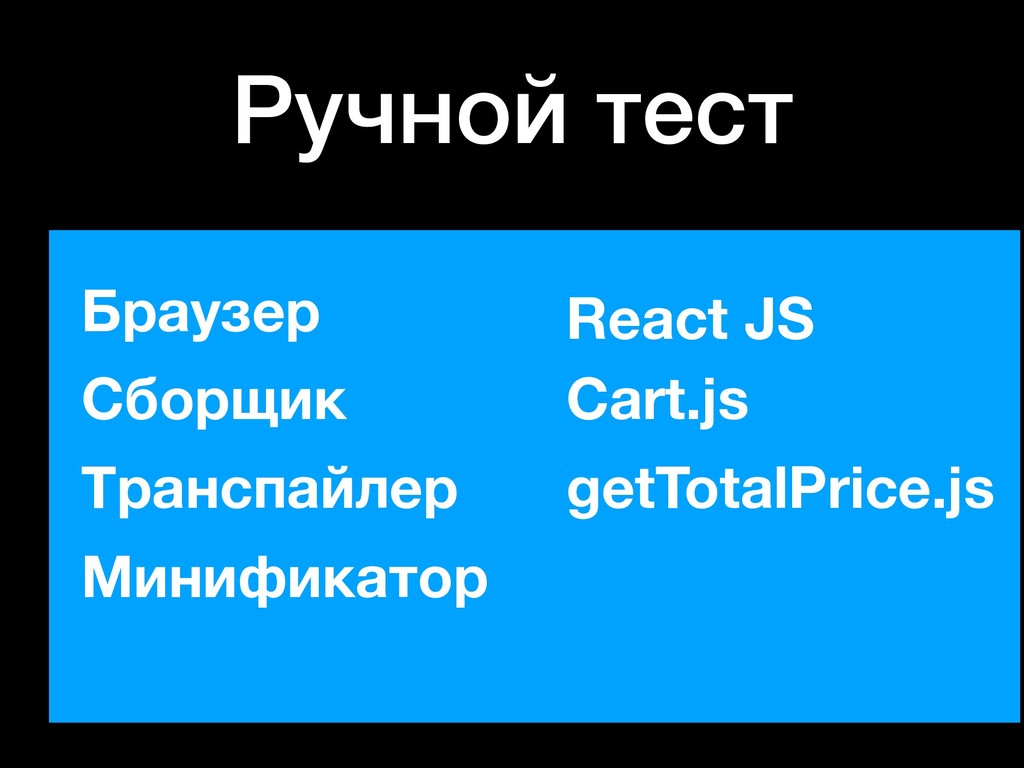 Браузер Сборщик Транспайлер Минификатор React JS Cart.js getTotalPrice.js Ручной тест