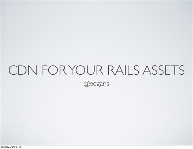 CDN FOR YOUR RAILS ASSETS @edgarjs Sunday, June 9, 13