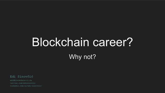 Don’t do blockchains if... ◦ I want to work 9 to 5 ◦ I want to work in office not learning much and just get my moniez (less responsibility the better) ◦ Not open to new technologies and trends ◦ Not willing to read and learn on daily basis (like hour or two just reading new stuff a day) ◦ A lot of math (FER was just a child game) ◦ When lambo? (I’m here for the trading anyway, who cares about those hippies) • Do blockchains if... ◦ When to experiment if not now when you are young and full of energy ◦ Later you will have wifes, husbands, children… or cats? (much harder to start) ◦ If you want to make an impact (you won’t change a world, sorry…) ◦ But you can work on stuff that people actually use and get daily feedback (make something meaningful - not just another app)