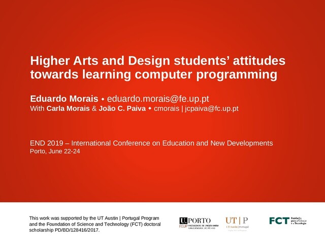 Conference on Education and New Developments Porto, June 22-24 This work was supported by the UT Austin | Portugal Program and the Foundation of Science and Technology (FCT) doctoral scholarship PD/BD/128416/2017.