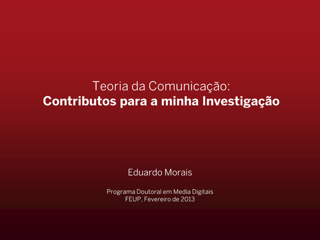 Apresentação para Teoria da Comunicação, Doutoramento em Media Digitais FEUP.