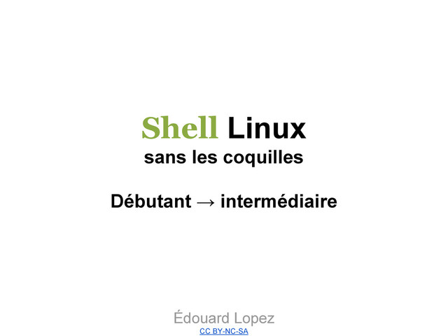 L'objectif est de démystifier le shell, fournir une quelques commandes utiles, et présenter des fonctionnalités et des structures plus avancées (expansion des paramètres, tests, boucles, sous-commandes, etc.)