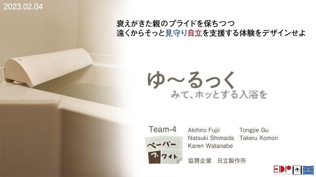 東京工業大学大学院エンジニアリングデザインプロジェクト2022で Team ペーパーフォワイト によって発表されたプロダクト「ゆ〜るっく」のプロダクトピッチ、デザインプロセススライドです。