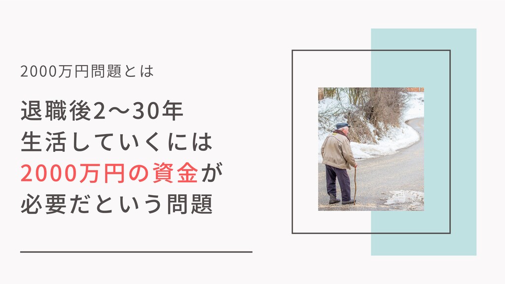 退職後2〜30年 ⽣活していくには 2000万円の資⾦が 必要だという問題 2000万円問題とは