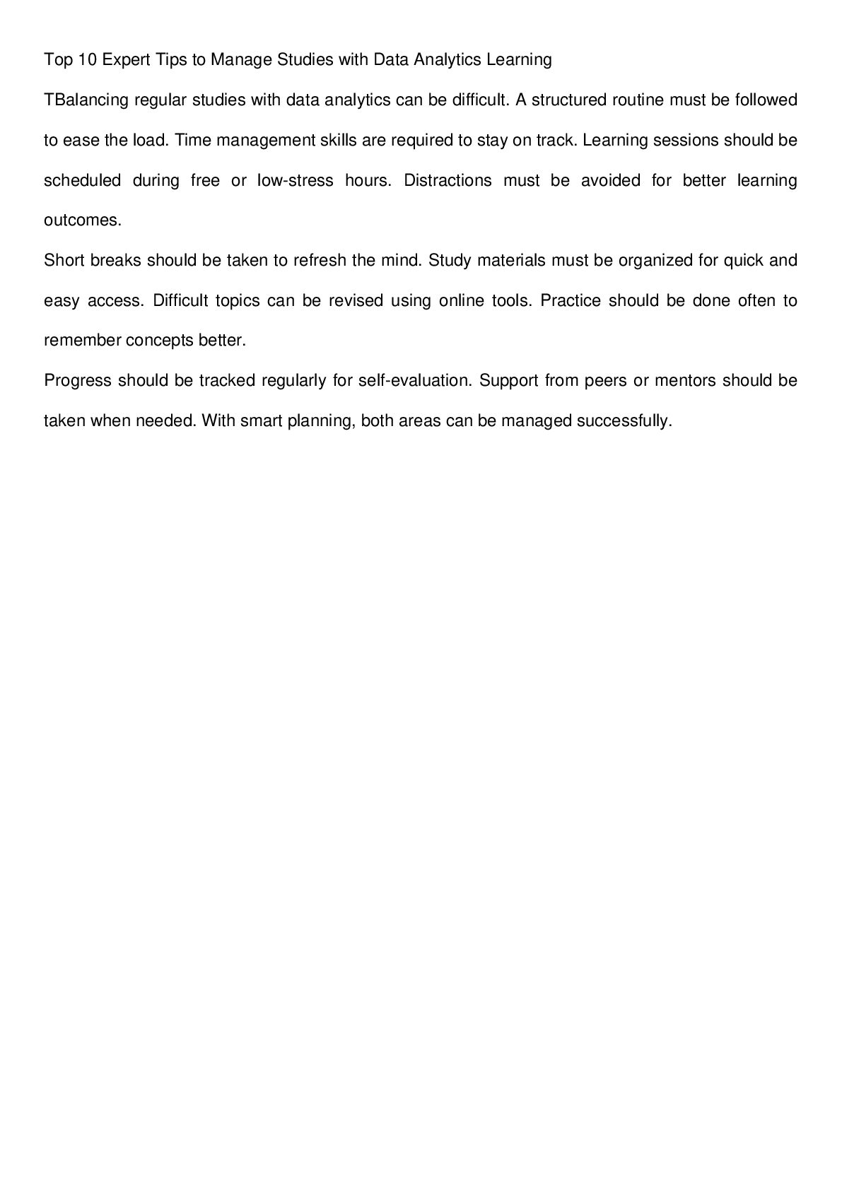 Master the art of managing your academic workload while learning data analytics with these 10 expert-backed strategies. Discover effective time management, focused study routines, real-world practice, and how to stay motivated and on track with your learning goals.