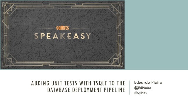 pipeline • Database unit testing framework for Microsoft SQL Server • Allow to write T-SQL code as tests • Tests are automatically run within transactions • Provides a way to isolate code and tables using mocking • Output can be plain text or XML @EdPiairo, #sqlbits