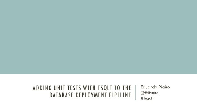 database deployment pipeline • Unit tests is about testing code • You do not need a database full of data, you need the opposite • Makes creating unit tests easy • Data setup • Only the necessary data for making the test work is needed • Mocking • tSQLt.FakeTable • tSQLt.FakeFunction • tSQLt.SpyProcedure @EdPiairo, #TugaIT