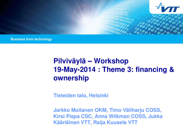 & ownership Tieteiden talo, Helsinki Jarkko Moilanen OKM, Timo Väliharju COSS, Kirsi Pispa CSC, Anna Wilkman COSS, Jukka Kääriäinen VTT, Raija Kuusela VTT