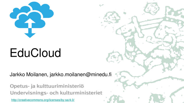 cooperate effectively • Define concrete model for technological co-operation – X-Road and – EduCloud under one roadmap/model • 4 times / year 1 day workshop (IRL) • Once a year 1 bigger dev & business conference? • Monthly webinars, connect.funet.fi/educloud – Andres Kütt & Jarkko Moilanen – Practical information sharing, integration patterns etc • In Finland: Ministry of Finance (?) and Ministry of Education