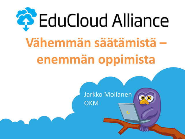ja viestintätekniikan käyttöä ja ymmärtämistä, koulutyön vaatimat välineet olisivat entistä helpommin oppilaiden, opiskelijoiden ja opettajien käytössä. educloudalliance.org 9.12.2014, Helsinki