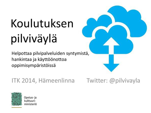 moderneja digitaalisia oppimisresursseja, mutta isossa kuvassa suomalaiset oppilaat käyttävät vähemmän digitaalisia palveluita koulussa kuin vertaisensa Euroopassa. Digitaalisten oppimisresurssien hankinta ja käyttöönotto vaati liikaa vaivaa opettajilta rehtoreilta kunnan IT-yksiköiltä oppimisresurssien tuottajilta Tämä vaivannäkö pitäisi käyttää oppimisen tukemiseen ja mielekkääseen toimintaan