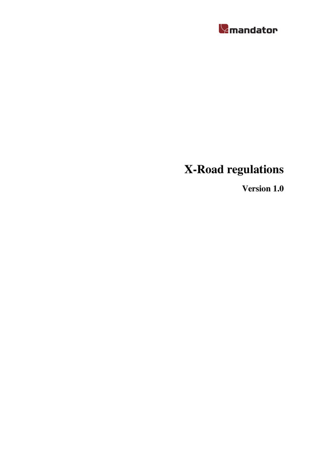 X-Road organization’s tasks, competencies and responsibilities The X-Road organization’s duty is to ensure the proper functioning of the X-Road as well the ongoing development of the X-Road in accordance with needs of the users. The X-Road organization consists of the following (see figure 2) • Management organization, consisting of the Estonian Informatics Centre (RIA) director and department heads • Operational organization, known as the X-Road centre, consisting of various individuals from various departments of RIA that administer and develop the X- Road • Cooperative organization, known as the X-Road partners, consisting of service providers, service consumers, application service providers and authentication service providers. The X-Road organization is conceptually roll based. For example, an individual can be a service provider as well as a consumer of services provided by another institution. The Estonian Informatics Centre fills the following roles in the X-Road organization: X- Road management organization, X-Road centre, database administrator and service provider (RIHA), application service provider (citizen’s portal and entrepreneur portal etc), see figure 3. 3.1.1 X-Road management organization responsibilities The management organization is responsible for planning and leading the X-Road organization, see figure 2. The management organization is divided into the following roles: • Head of the management organization; • Member of the management organization. The head of the management organization is responsible for: • The operational performance of the X-Road as well as preparation of reports; • The signing, changing, staying and ending of X-Road related agreements and contracts; • The signing, changing, staying and ending of work contracts for members of the X-Road centre; • Approval of the X-Road budget; • Representing or accrediting others to represent the X-Road organization; • Making decisions regarding the requirement and financing for new services; • The approval of X-Road centre backup procedures and plans; • The approval of X-Road centre archival procedures and plans; • The appointment of members of the management organization. The members and head of the management organization are responsible for carrying out the activities assigned by the management board including: • Planning of activities for the X-Road organization; • Validation of activities performed by the X-Road organization; • Preparation and validation of budgets for the X-Road organization;