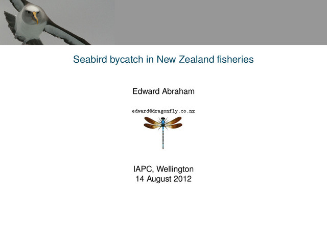 solve this problem MPI All the observers who put in the time at sea, Nathan Walker, Rohan Currey, Martin Cryer, the database team Sextant Technology Susan Waugh, Dominique Filippi Dragonfly Finlay Thompson, Katrin Berkenbusch, Yvan Richard JPEC Johanna Pierre AEWG All the working group members for keeping us honest Photographs David Thompson, Duncan Wright for the Buller’s albatross in the banner (CC-BY-SA), DOC, MPI Finding out more All research available from http://dragonfly.co.nz/publications.html