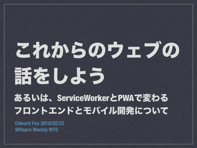 ͜Ε͔ΒͷΣϒͷ Λ͠Α͏ ͋Δ͍ɺServiceWorkerͱPWAͰมΘΔ ϑϩϯτΤϯυͱϞόΠϧ։ൃʹ͍ͭͯ Edward Fox 2018/02/23 @Repro Weekly MTG