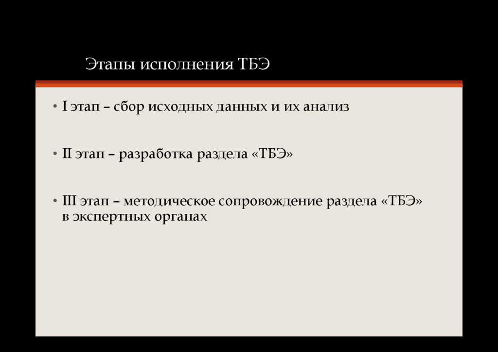 Подраздел в составе разделов проектной документации где описан необходимый комплекс мер для всех объектов капитального строительства, с целью обеспечения их безопасной эксплуатации • Принятое сокращенное наименование подраздела в проектной документации – ТБЭ