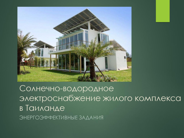 Немецкий разработчик альтернативных систем электроснабжения Sebastian-Justus Schmidt в настоящее время проводит эксперимент в Таиланде, где основанная им компания CNX Construction возвела жилой комплекс Phi Suea, в котором впервые в мире применена гибридная система, использующая солнечную энергию и водород, для полностью автономного электроснабжения комплекса.