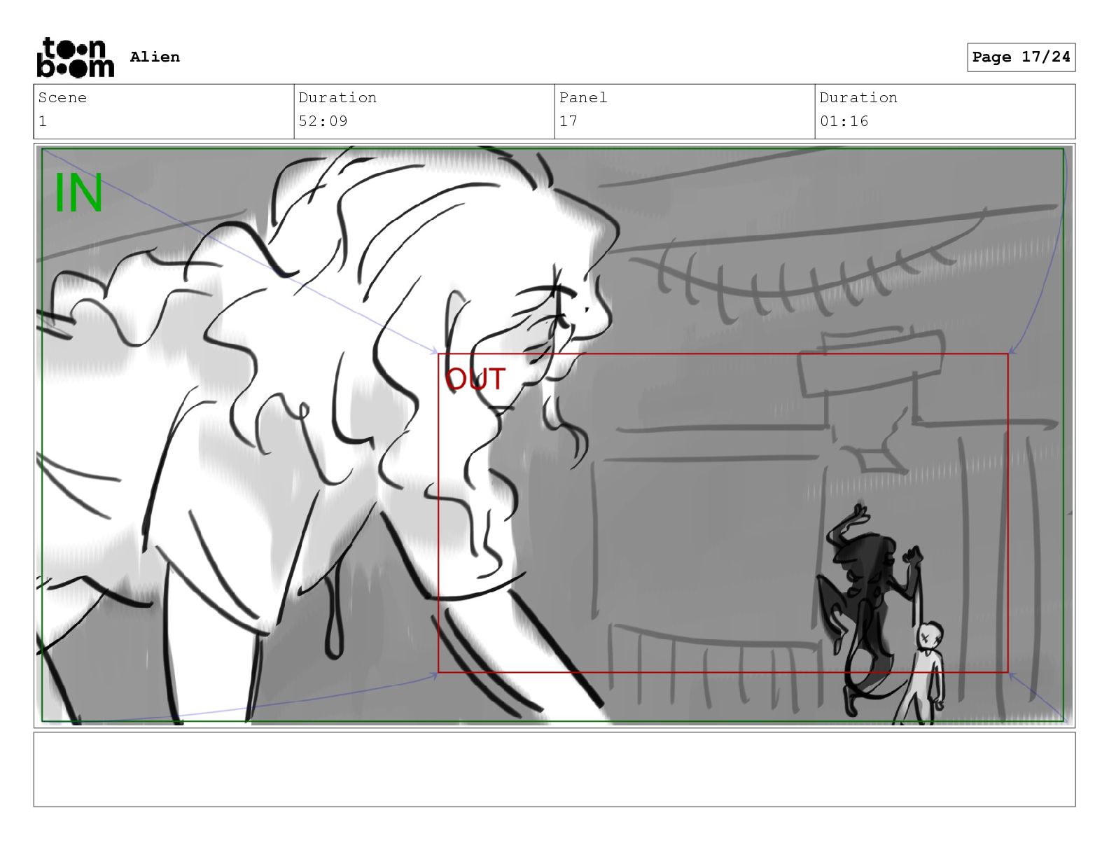 Scene 1 Duration 52:09 Panel 17 Duration 01:16 Alien Page
