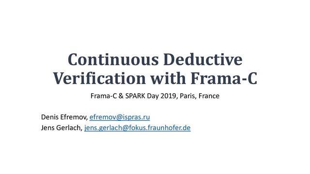 In this talk, we present our experience of extending continuous integration with deductive verification in the Vessedia and the AstraVer projects. While in the Vessedia project Frama-C/WP is used to formally verify parts of the IoT operating system Contiki the AstraVer project relies on Frama-C/AstraVer(Jessie) to verify a Linux security driver.