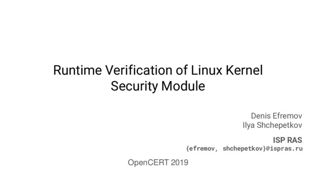 The Linux kernel is one of the most important Free/Libre Open Source Software (FLOSS) projects. It is installed on billions of devices all over the world, which process various sensitive, confidential or simply private data. It is crucial to establish and prove its security properties. This work-in-progress paper presents a method to verify the Linux kernel for conformance with an abstract security policy model written in the Event-B specification language. The method is based on system call tracing and aims at checking that the results of system call execution do not lead to accesses that violate security policy requirements. As a basis for it, we use an additional Event-B specification of the Linux system call interface that is formally proved to satisfy all the requirements of the security policy model. In order to perform the conformance checks we use it to reproduce intercepted system calls and verify accesses.