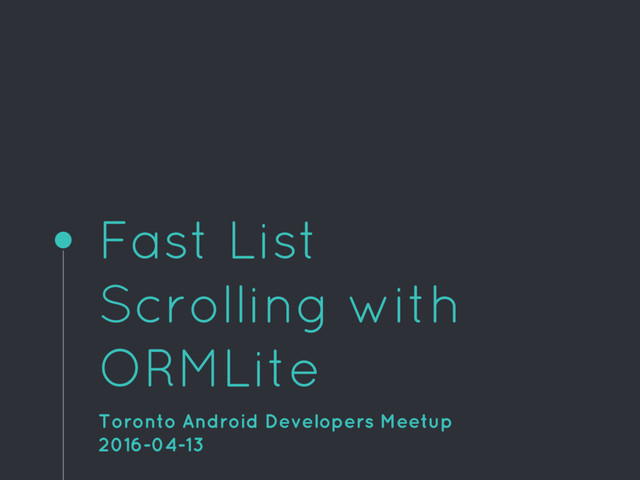 "Buttery-smooth" list scrolling is an important part of ensuring a good user experience on Android. But achieving this when rendering data from multiple database tables can be tricky. This talk will describe the steps I took to debug the performance issues and arrive at a solution using ORMLite.