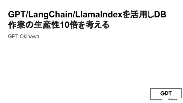GPT/LangChain/LlamaIndexを活用しDB 作業の生産性10倍を考える GPT Okinawa