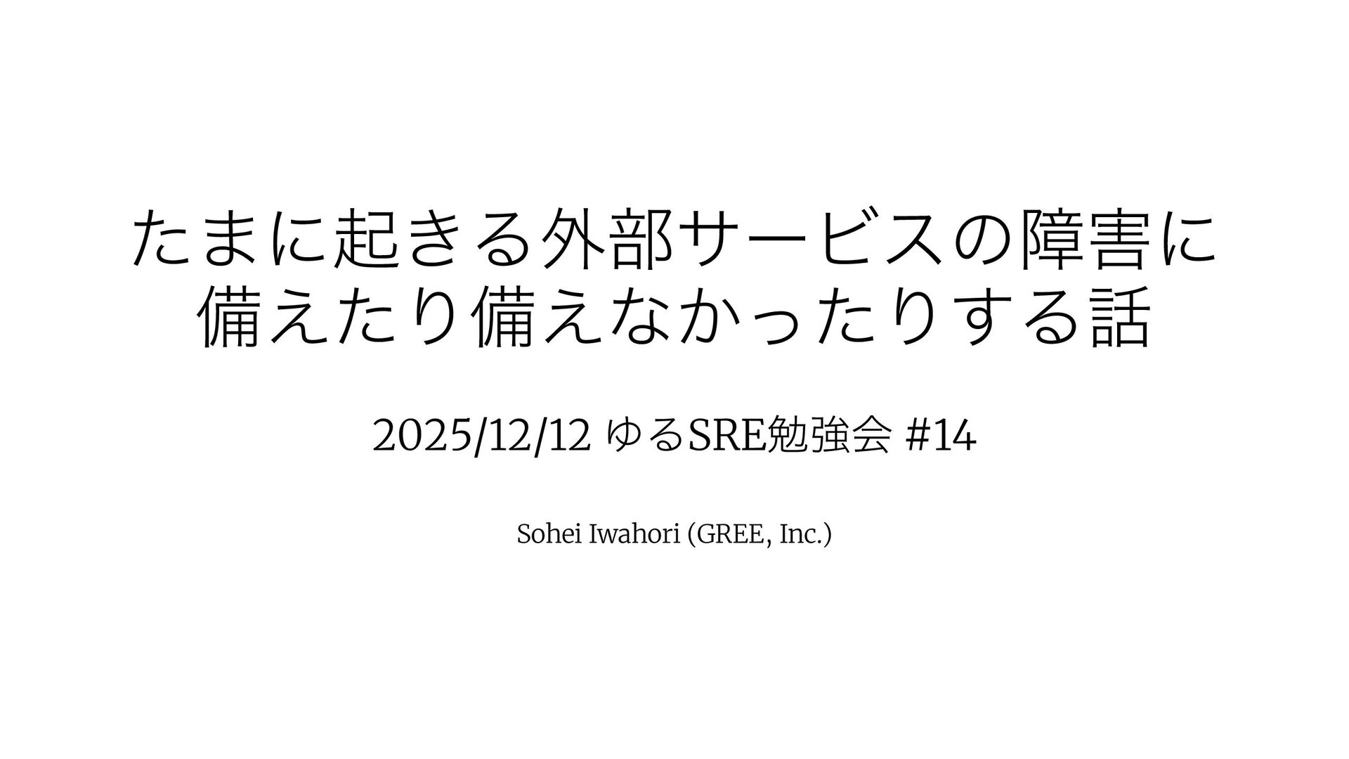 ͨ·ʹى͖Δ֎෦αʔϏεͷোʹ උ͑ͨΓඋ͑ͳ͔ͬͨΓ͢Δ 2025/12/12 ΏΔSREษڧձ #14 Sohei Iwahori (GREE, Inc.)
