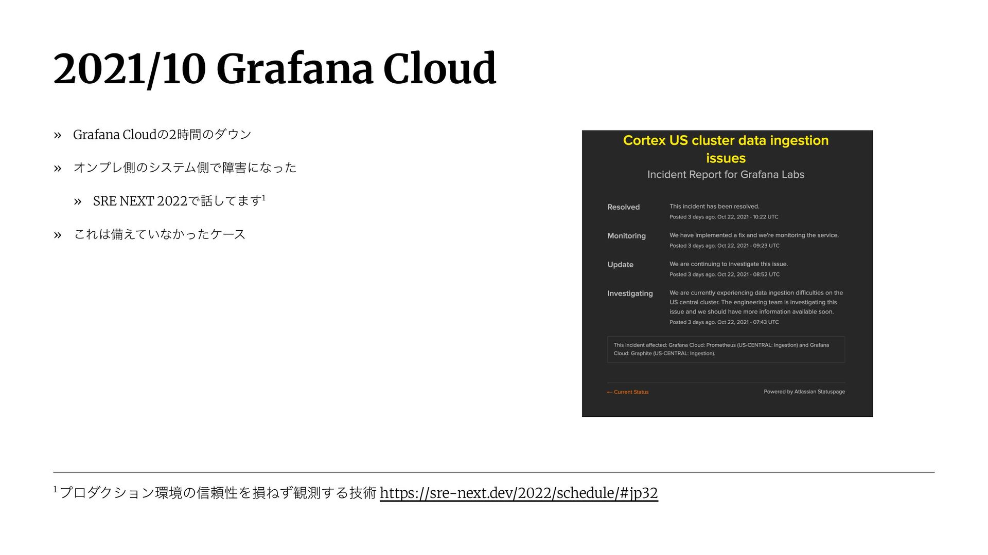 2021/10 Grafana Cloud » Grafana Cloudͷ2࣌ؒͷμϯ » ΦϯϓϨଆͷγεςϜଆͰোʹͳͬͨ » SRE