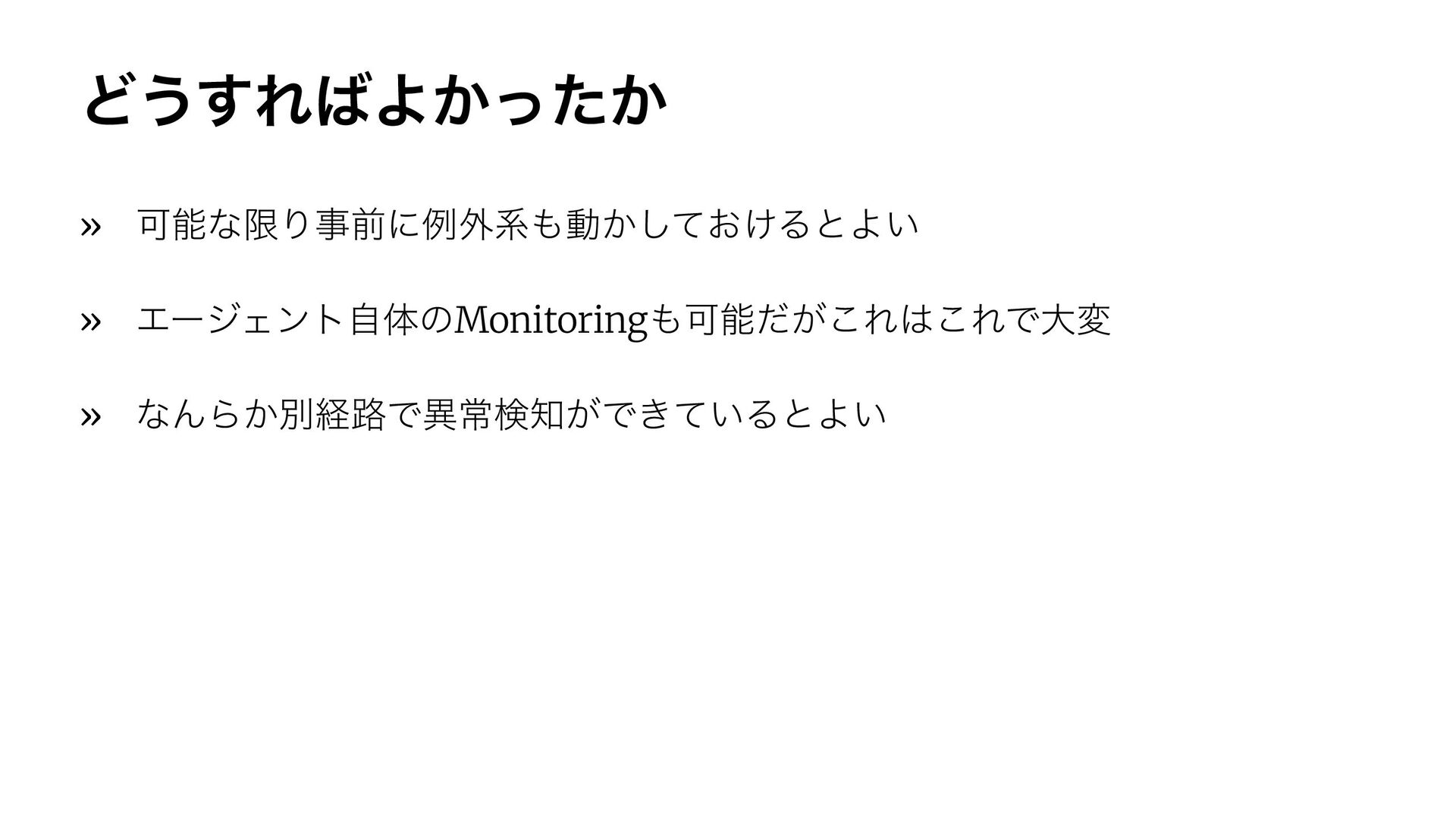 Ͳ͏͢ΕΑ͔͔ͬͨ » ՄೳͳݶΓࣄલʹྫ֎ܥಈ͔͓͚ͯ͠ΔͱΑ͍ » ΤʔδΣϯτࣗମͷMonitoringՄೳ͕ͩ͜Ε͜ΕͰେม » ͳΜΒ͔ผܦ࿏Ͱҟৗݕ͕Ͱ͖͍ͯΔͱΑ͍