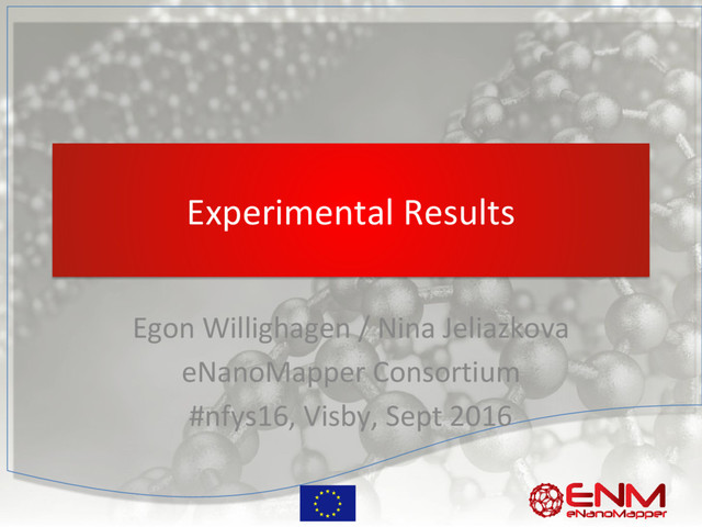 Experimental Results Egon Willighagen / Nina Jeliazkova eNanoMapper Consortium #nfys16,