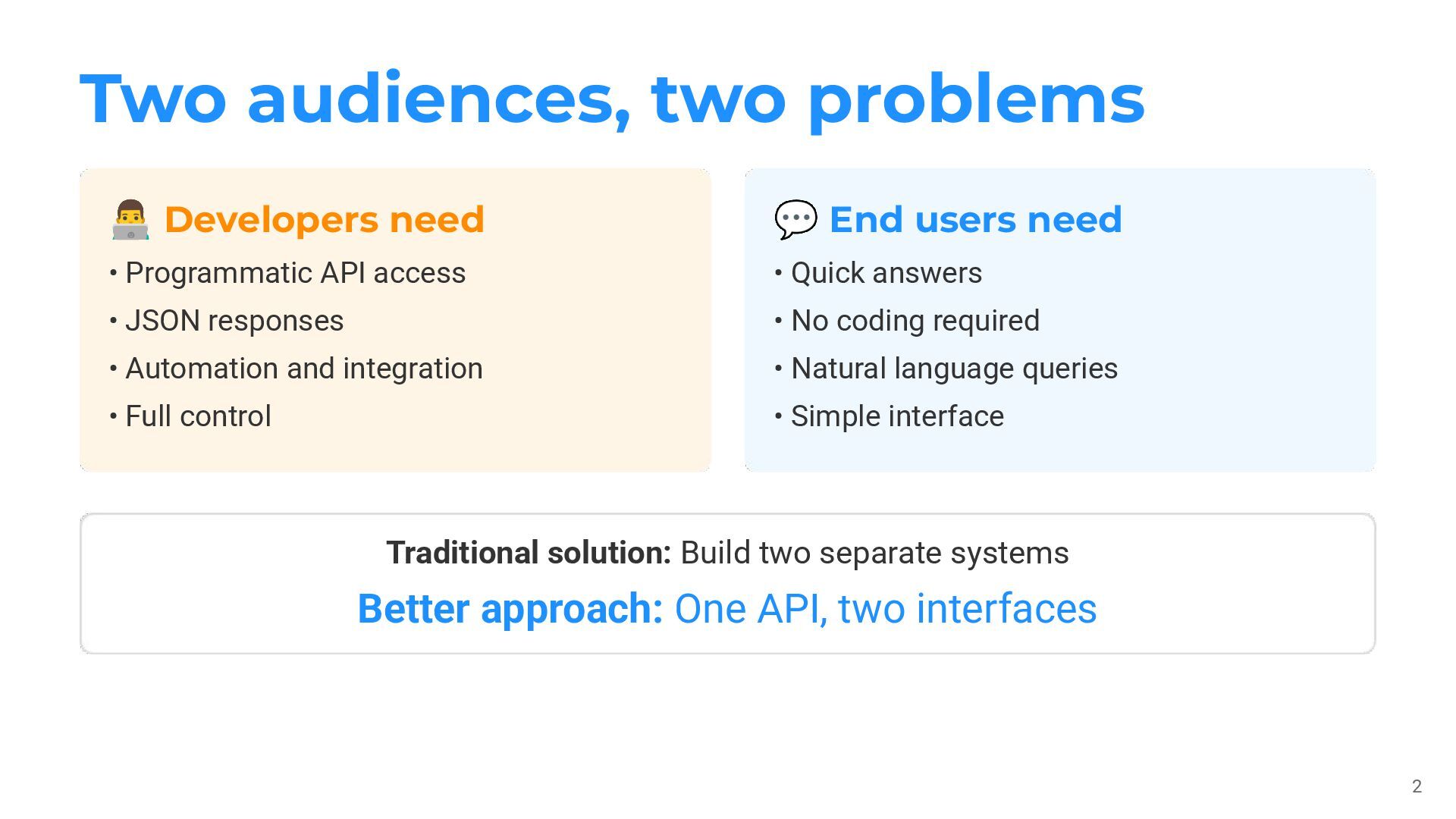The traditional approach is to build two separate systems: a REST API for developers and a custom dashboard for end users. But this creates maintenance overhead, duplicate business logic, and architectural complexity.