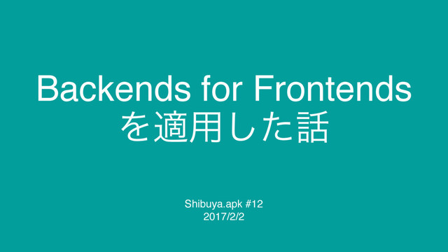 Backends for Frontends Λద༻ͨ͠ Shibuya.apk #12 2017/2/2