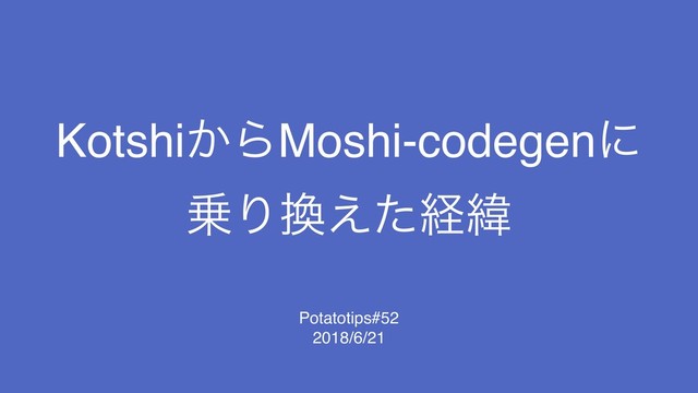 Kotshi͔ΒMoshi-codegenʹ Γ͑ͨܦҢ Potatotips#52 2018/6/21
