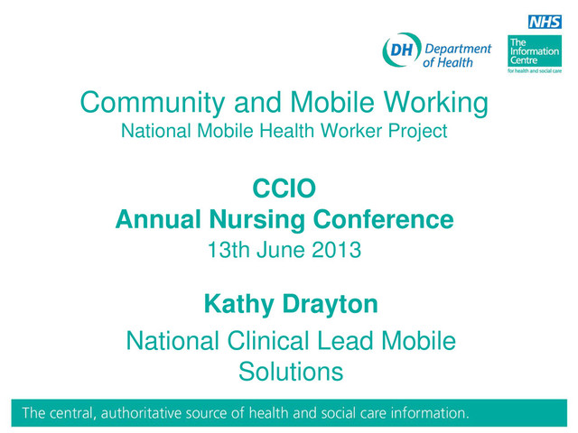 Community and Mobile Working - National Mobile Health Worker Project CCIO Annual Nursing Conference 13th June 2013