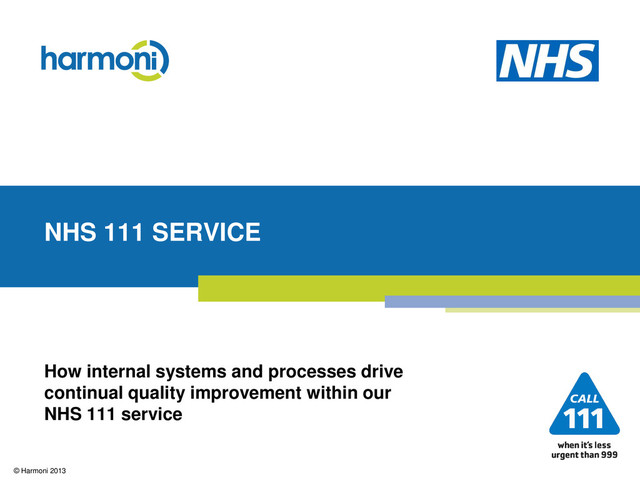 service is a singular point of access for the public to use when needing health care and advice • It is designed to facilitate calls which are less urgent than 999 (however still incorporates 999 process when required) • It is a national program designed to meet the local requirements of an area